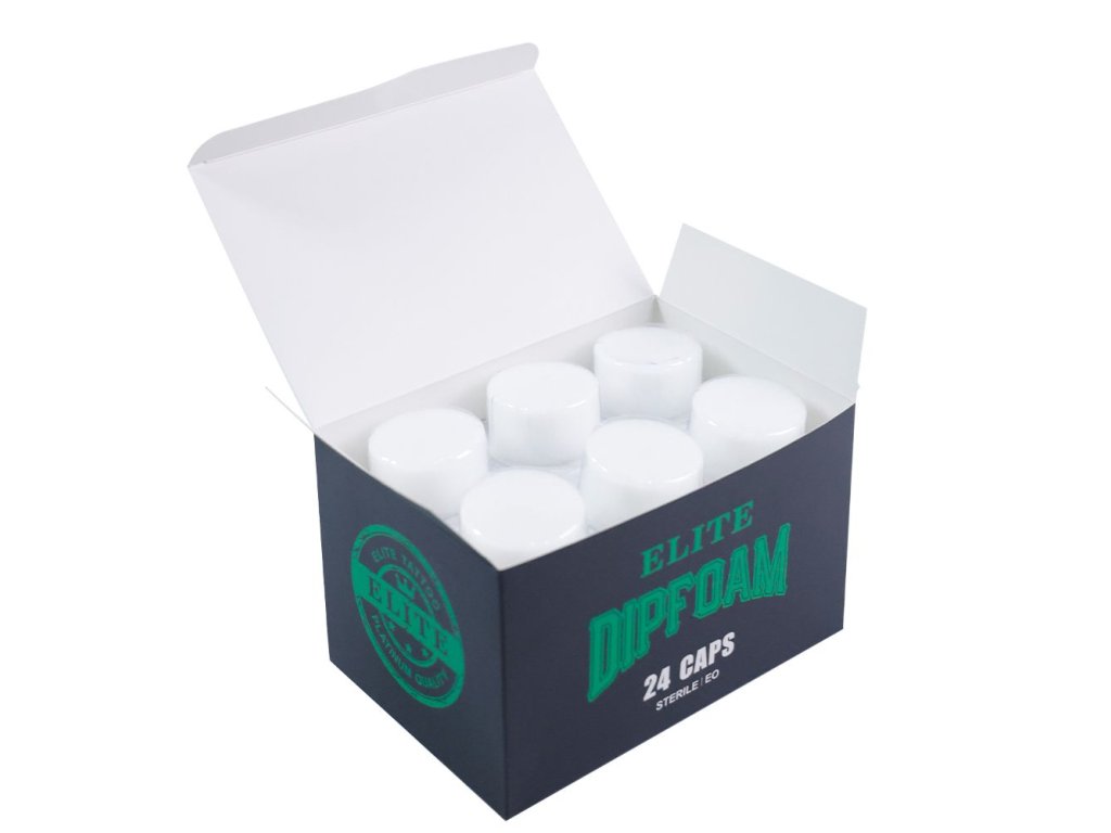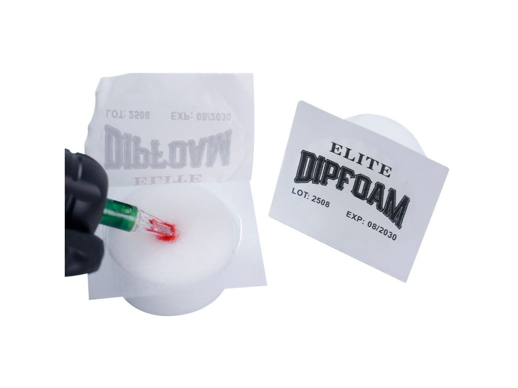 ELITE DIP FOAM CLEAN CUP je najľahší a najrýchlejší spôsob čistenia ihly, cartridge a špičky počas tetovania. Pena v tégliku je ekologická, hypoalergénna a sterilná. Vďaka tejto pene nemusíte strácať čas pri zmene farby zdĺhavým čistením a vysúšaním ihly a hlavne nezanáša ihly vláknami z papierových či textilných obrúskov. Penu navlhčíte malým množstvom vody a jemne zatlačíte, aby absorbovala rovnomerne celé množstvo tekutiny.