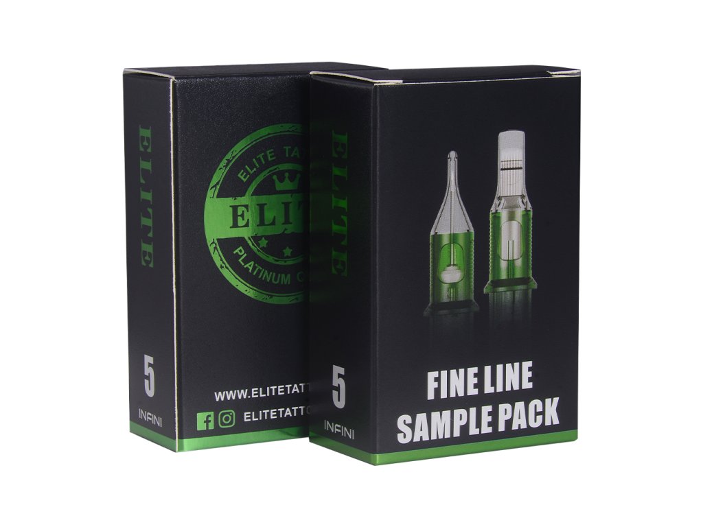 Elite Infini SAMPLE PACK - FINELINE - je špeciálny box cartridgov navrhnutý pre "fineline" štýl tetovania - ideálne pre umelcov, ktorí pracujú s detailom, jemnosťou a maximálnou kontrolou. Cartridge sú kompatibilné s väčšinou štandardných penových strojčekov.