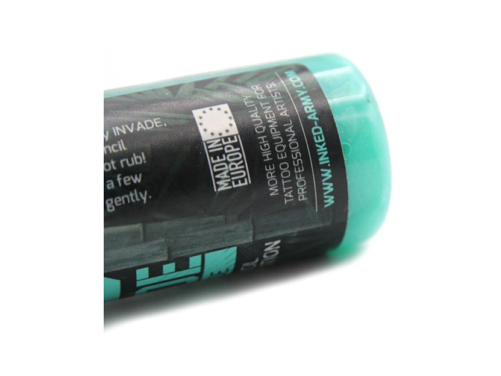 Invade Stencil Solution je mimoriadne aktívny prípravok na odtlačenie motívu na kožu. Odtlačok je ostrý ako žiletka a šablóna sa nerozmazáva . Na pokožke ani na líniách šablóny neostáva žiadne sfarbenie.